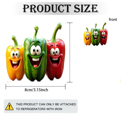 2D Flat, 1 Acrylic Fridge Magnet, 3.15 Inches, Cartoon Pepper Joy Trio - Bright Yellow